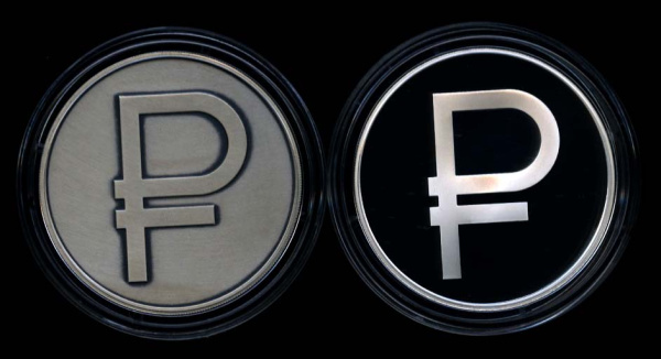 3 рубля — Комплект 2 монеты Графическое обозначение рубля в виде знака (Proof и BU c чернением)) 2014 ММД. В коробке, капсулах, с сертификатами. Банко…