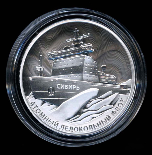 3 рубля — Атомный ледокол «Сибирь» 2024 СПМД. В капсуле, с сертификатом. Банковская сохранность монеты (Россия)