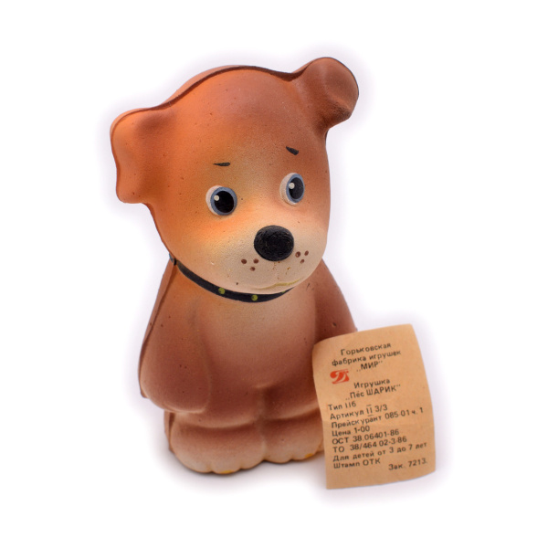 Игрушка «Пес Шарик». Горьковская фабрика игрушек «Мир». Размер 7×13 см (СССР)