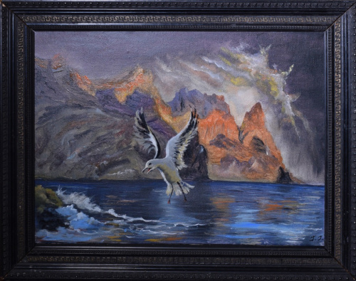 Картина «Чайка у Кара-Дага». Автор: Галина Гусева. Масло, холст. Размер 48×39 см (Россия)