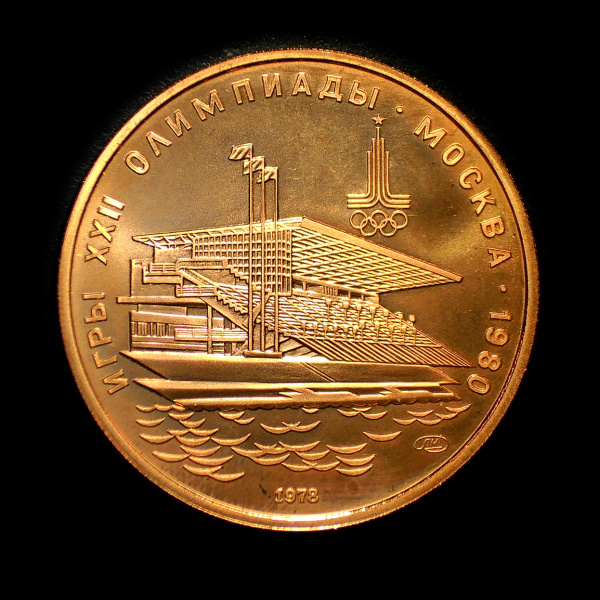 100 рублей — Олимпиада 1980. Гребной канал в Крылатском 1978 ЛМД. В капсуле (СССР)