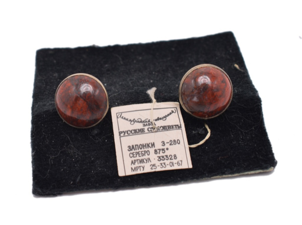 Запонки. Вставки из камней. ЗАвод «Русские самоцветы». Серебро 875 пробы. С биркой. 8,55 г (СССР)