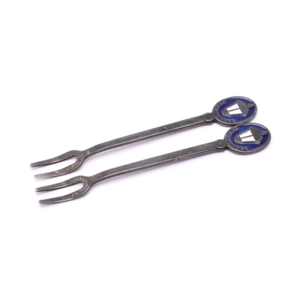 Набор вилок для лимона «Ленинград» из мельхиора с холодной эмалью. Размер 8,5 см (СССР)
