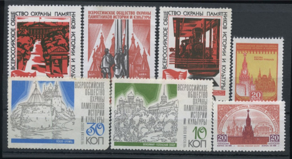 Лот негашёных марок для членских взносов Всероссийского общества охраны памятников истории и культуры 7 шт, все разные, ** (СССР)