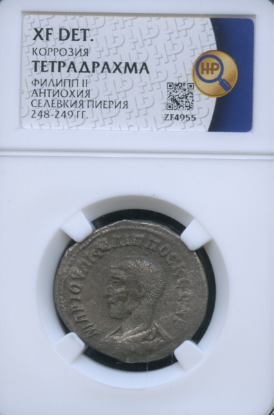 Тетрадрахма. Сирия. Селевкия Пиерия. Антиохия. Филипп II Младший (247−249 гг.), эмиссия 248−249 гг. 248−249. В слабе 248-249