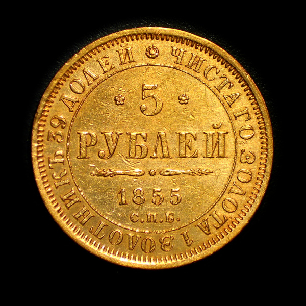 5 рублей — Орел 1850 — 1858, Хвост Елочкой 1855 CПБ АГ. В капсуле CПБ АГ (Российская Империя)