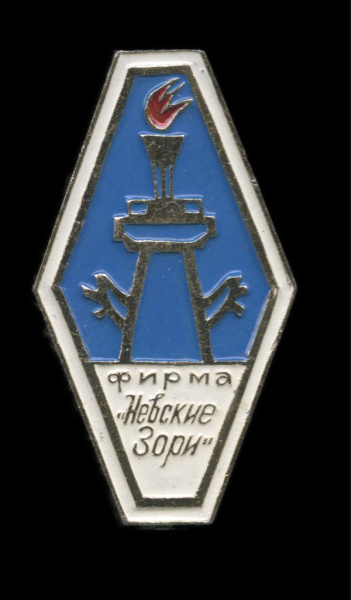 Знак «Фирма „Невские Зори“». Крепление: булавка. Легкий, эмаль (СССР)