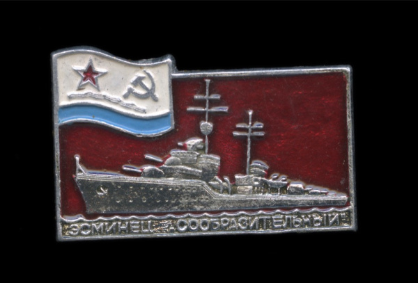 Знак «Эсминец „Сообразительный“». Крепление: булавка. Легкий, эмаль (СССР)