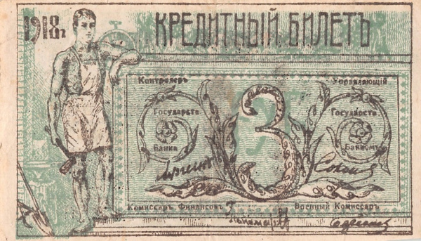 3 рубля Семиречье 1918 (Россия: Гражданская война)