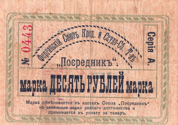 10 рублей Фергана товарищество «Посредник» 1918 (Россия: Гражданская война)