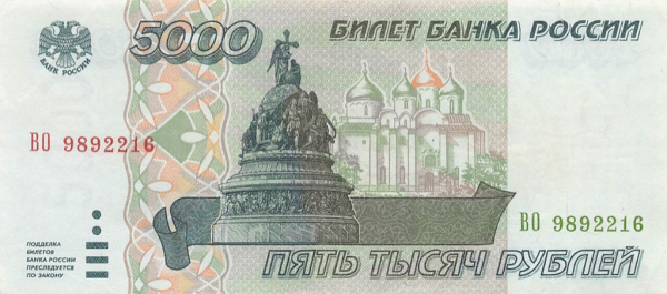 5000 рублей 1995 АА-ЯЯ. надрыв в 5 мм (Россия)