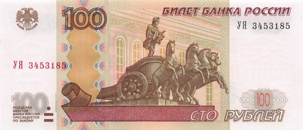 100 рублей — обр. 1997 2004 АА-ЯЯ (Россия)
