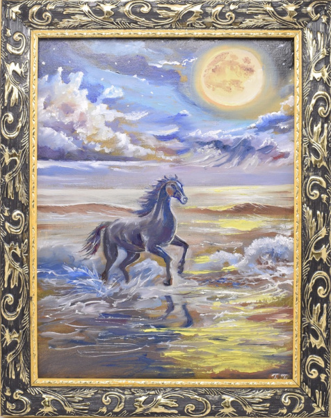 Картина «Ночное купание». Автор: Галина Гусева. Масло. Размер 47×38 см. Холст на картоне грунтованный (Россия)