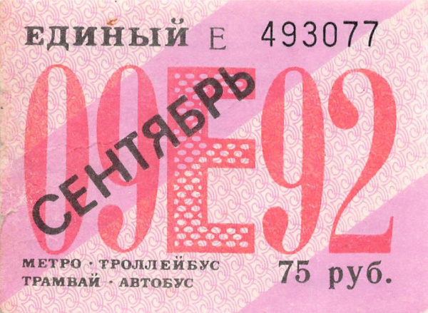 Единый проездной билет на сентябрь 1992 (Россия)
