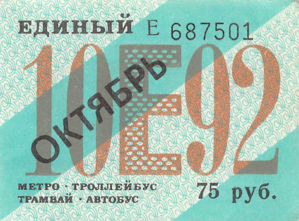 Единый проездной билет на октябрь 1992 (Россия)