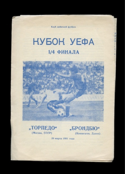 Программка футбольная «Кубок УЕФА. Торпедо — Брондбю» 1991 (СССР)
