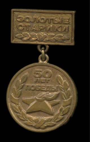 Знак «Золотые старики, 50 лет Победы». Крепление: булавка. Тяжелый (Россия)