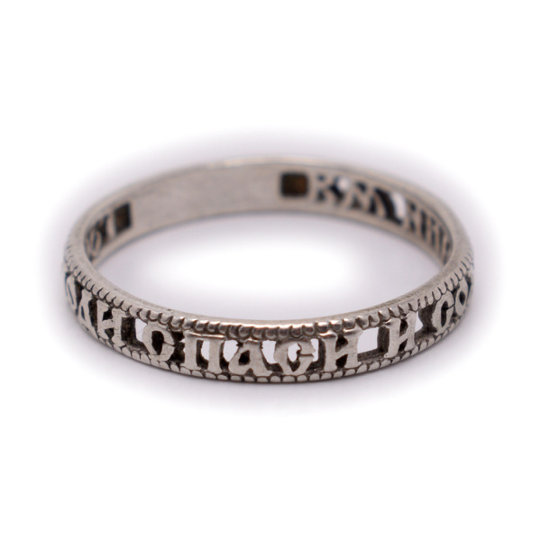 Кольцо ажурное. «Спаси и сохрани» Серебро 925 пробы. Вес 1,5 г. Размер 18