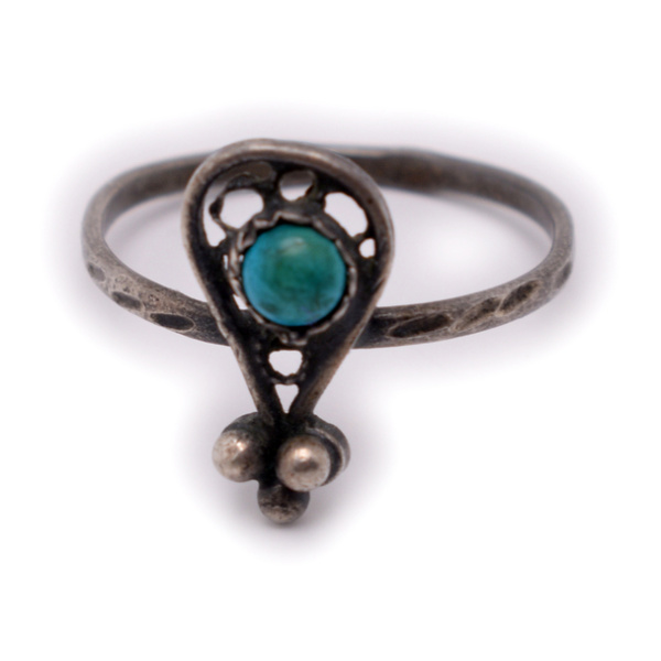 Кольцо с бирюзой. Серебро 916 пробы. Скань, зернь, чернение. Вес 1,7 г. Размер 17 1970