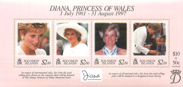 Почтовый блок «Памяти Принцессы Дианы» 1997 (Соломоновы Острова)