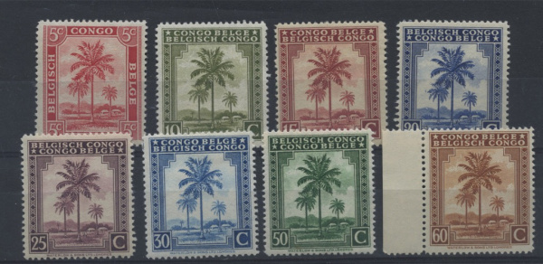 Лот из восьми марок Бельгийского Конго. Негашеные, без следов наклеек 1940 (Бельгийское Конго)