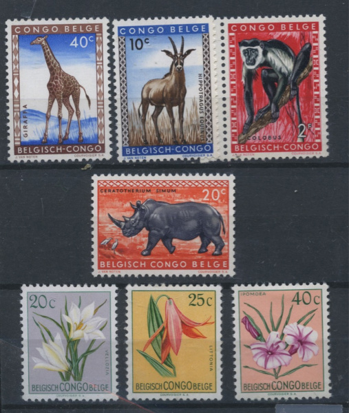 Лот из семи марок Бельгийского Конго «Флора и фауна Африки». Чистые без следов наклеек 1950 (Бельгийское Конго)