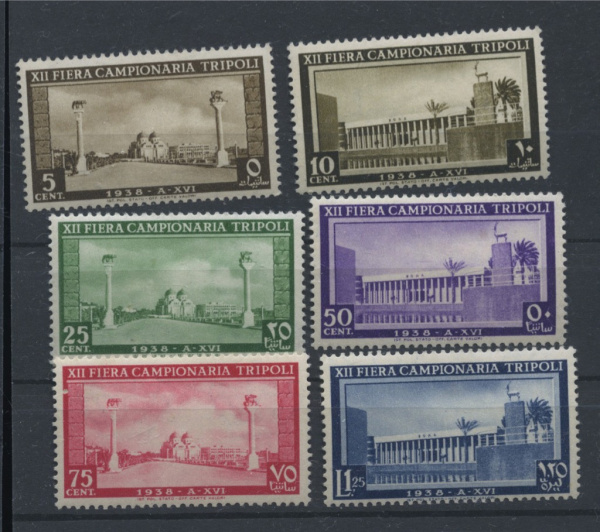 Лот из шести марок Итальянской Ливии. «XII Международная Выставка Триполи 1938». Чистые, без следов наклеек, клеевой слой не поврежден (Ливия)