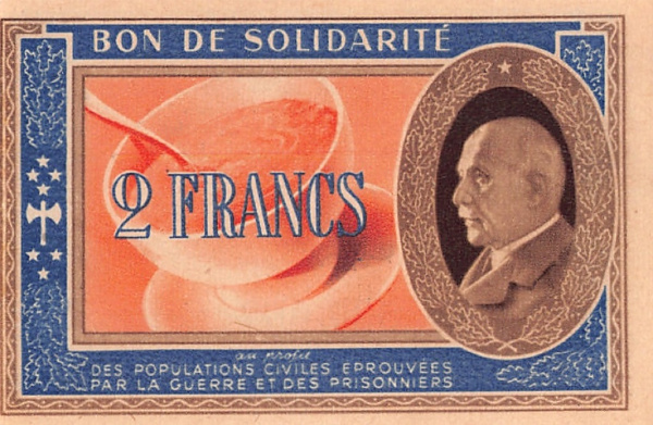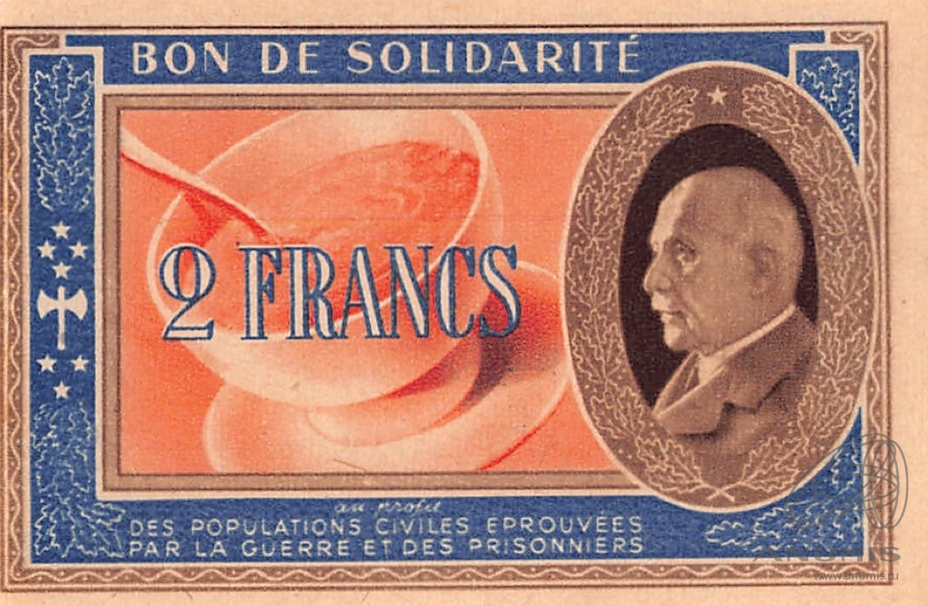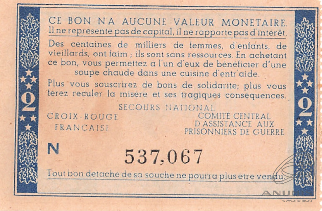 2 франка Лагерь военнопленных. Бон. Помощи военнопленным. Коллекция Г. и Я. Абезгузов 1944