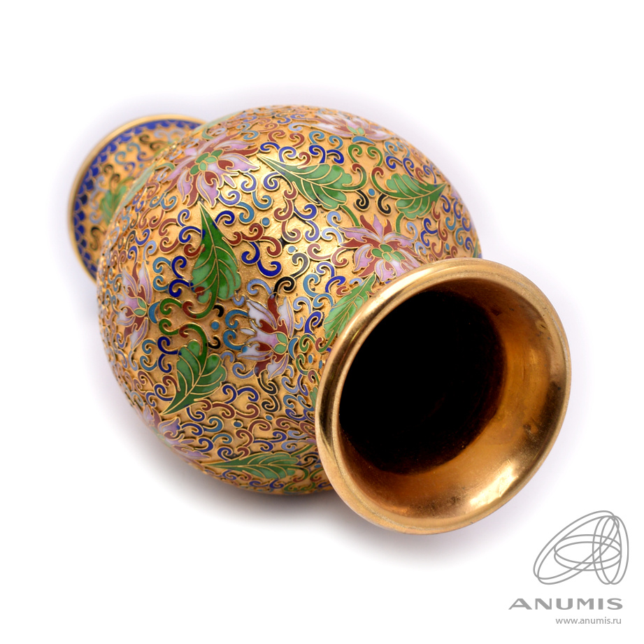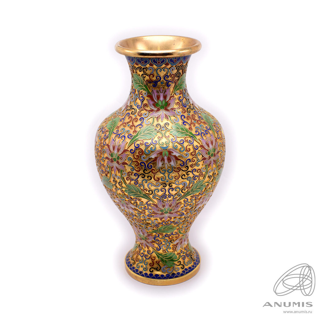 Ваза. Латунь. Клуазоне. Разноцветные эмали. Размер 15×28 см