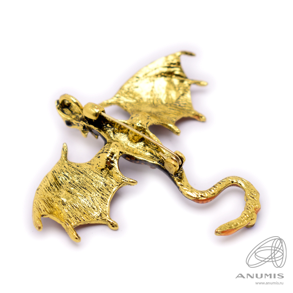 Брошь «Дракон». Со вставками. Крепление: булавка. Размер 7×6 см