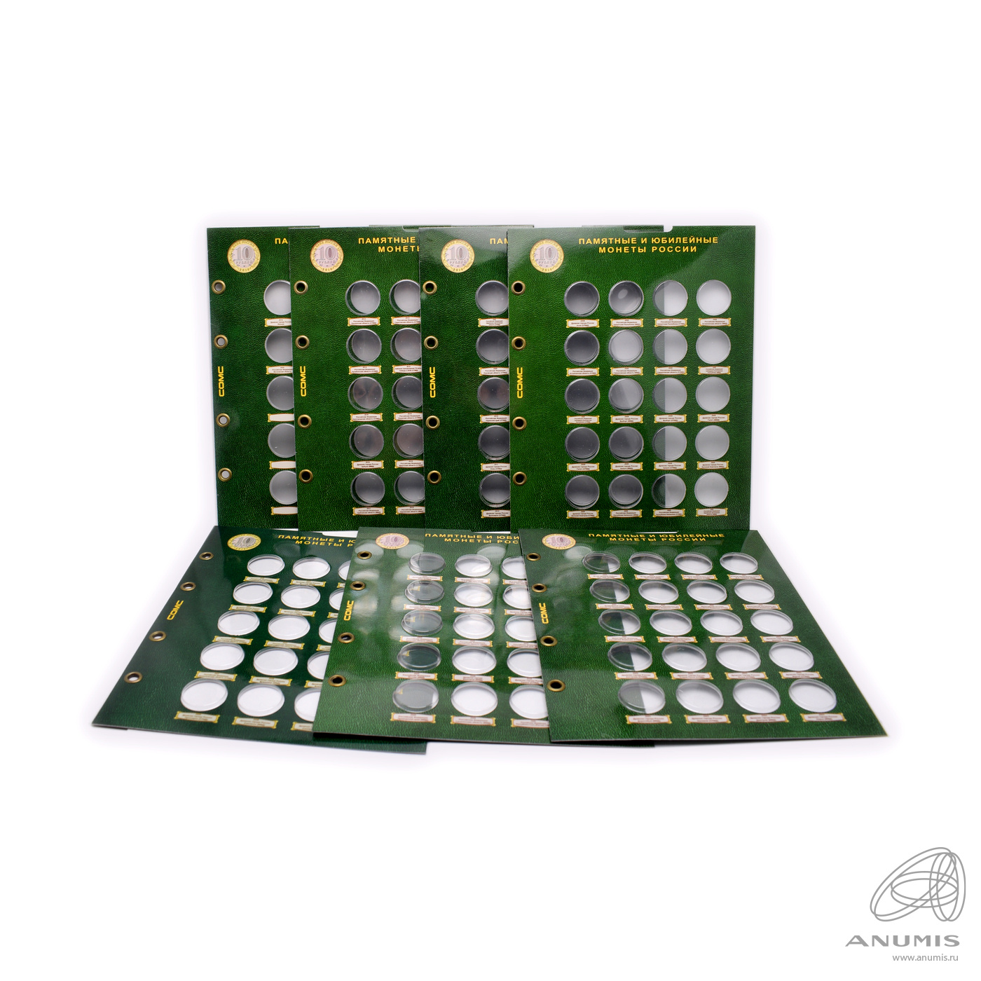 Лот листов для памятных юбилейных монет России, 7 шт. Размер 20×25 см