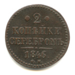 2 копейки серебром 1846 СМ